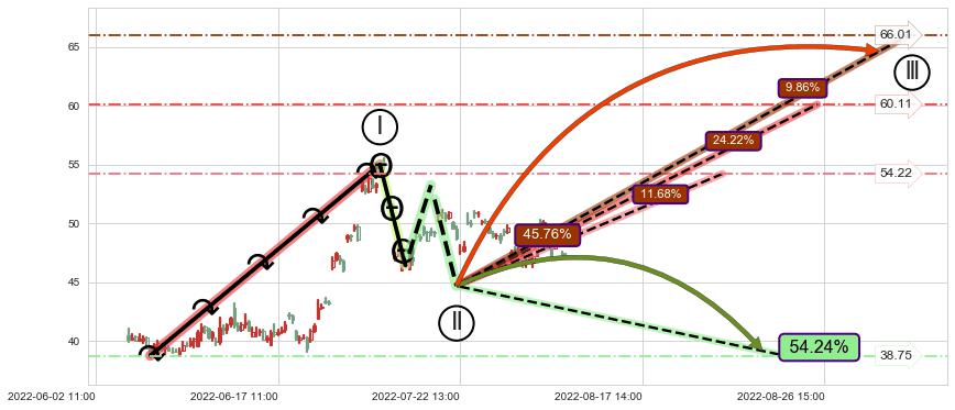 ➢ 循环浪继续向上【最低】位置(08-22:15, 54.22),匹配聚类样本比例25.53%, 可能性概率11.68%