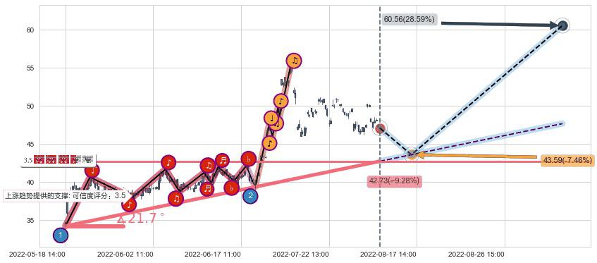 ➢ 预测:2022-08-17 11:00,【小幅回撤】稳定目前上涨趋势的前提下,预测价格:43.59
