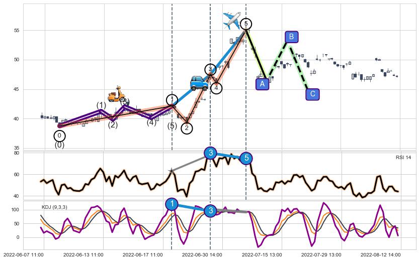 | 4 🅚:【战机起航】卖出点 ➕ 🌊:波浪理论上涨5浪延续回调:猜想回调C点击穿破位,猜想持续蓄力回调abc下跌方向(大周期趋势均值回复后小周期持续趋势跟踪) ☞ 看空信号 ⇥ 【均线】交织【图形】⇥ 综合量化分数: 36 | > |