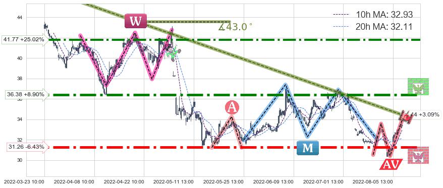 ♘ 阻力价格位36.38,可信任强度89.98%,距离最后交易2022-08-12 14:00形成的收盘价格33.41相差 +8.90%