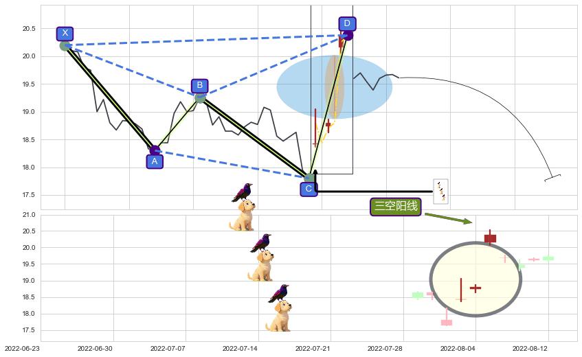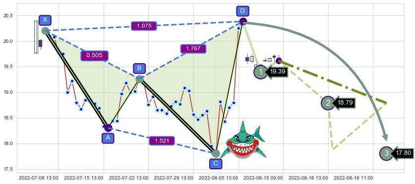 ➣ 已完成【鲨鱼】形态起点X: 07-06:14, 终点D: 08-05:14, 共45交易小时
