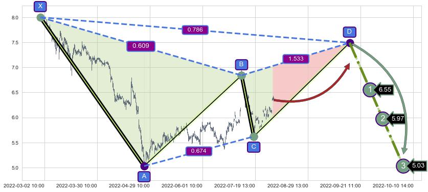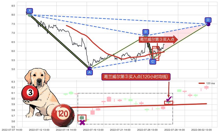 ➣ D点拟合预测价格7.49,距离最后交易收盘价格6.35相差 +17.96%