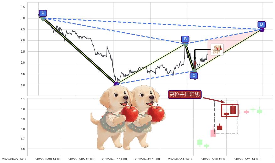 | 2 🅚:上涨螺旋桨形态 ➕ 📡:谐波伽利猜想c点下沉接近b点后强支撑来临拉升上涨(均值回复) ☞ 看多信号 ⇥ 【🅚线】交织【图形】⇥ 综合量化分数: 60 | > |