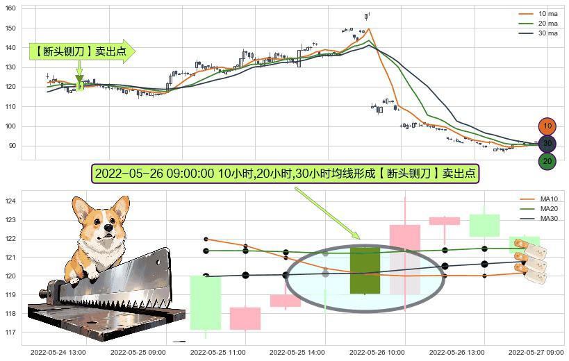 形态多维评估: ⚀ 2022-05-26 09:00:00小时显现 10小时-20小时-30小时均线 【断头铡刀】卖出点 看空信号,后市看跌,卖出