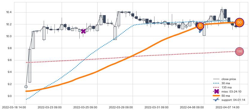 ⚂ 2022-05-20 09:00:00小时突然冒出一根大阳线,一下子顶穿三条均线且收盘价收在各条均线之上