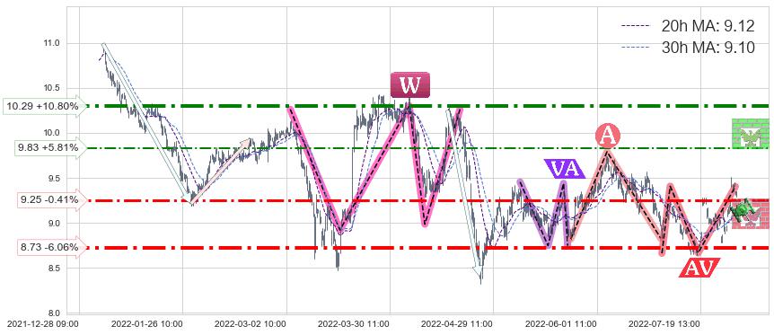 ♞ 20小时均线:9.12,30小时均线:9.10→ 快线>慢线