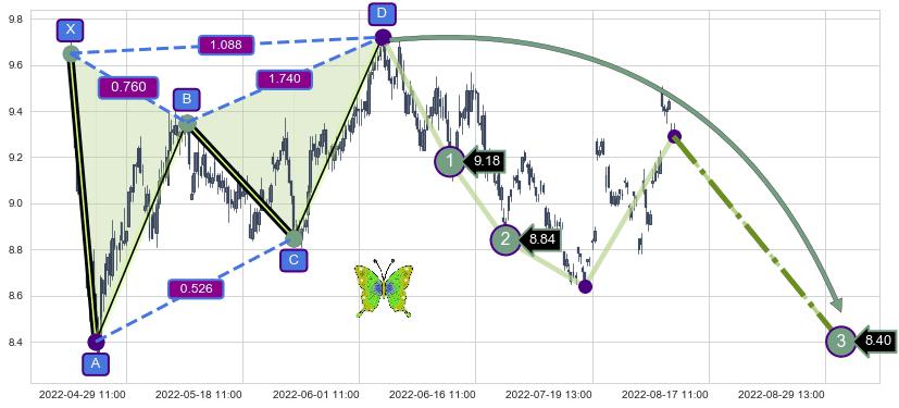 ➣ 已完成【蝴蝶】形态起点X: 04-22:13, 终点D: 06-06:11, 共135交易小时