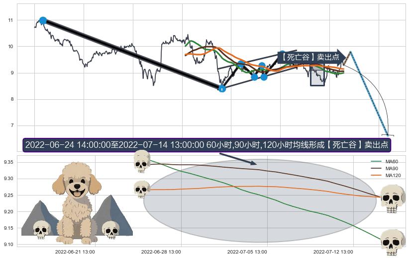 | 3 🅚:徐缓下降 ➕ 🎢:【死亡谷】卖出点均线组合卖出点信号形成后,猜想后续破位下跌,沿着向下的尖头三角下跌 ☞ 看空信号 ⇥ 【均线】交织【🅚线】⇥ 综合量化分数: 46 | > |
