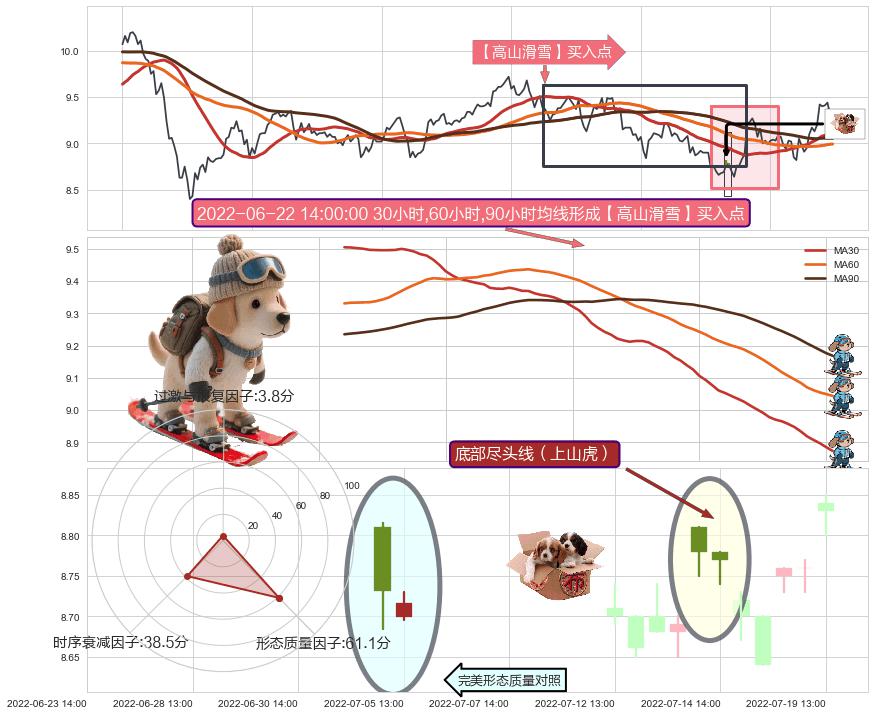 | 2 🅚:单针探底(定海神针) ➕ 🎢:【高山滑雪】买入点均线组合买入点信号形成后,猜想后续下行结束,持续反弹上涨(均值回复) ☞ 看多信号 ⇥ 【均线】交织【🅚线】⇥ 综合量化分数: 54 | > |