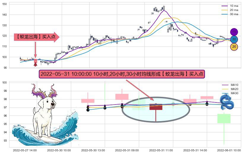 ⚀ 2022-05-31 10:00:00小时显现 10小时-20小时-30小时均线 【蛟龙出海】买入点 看多信号,后市看涨,买入