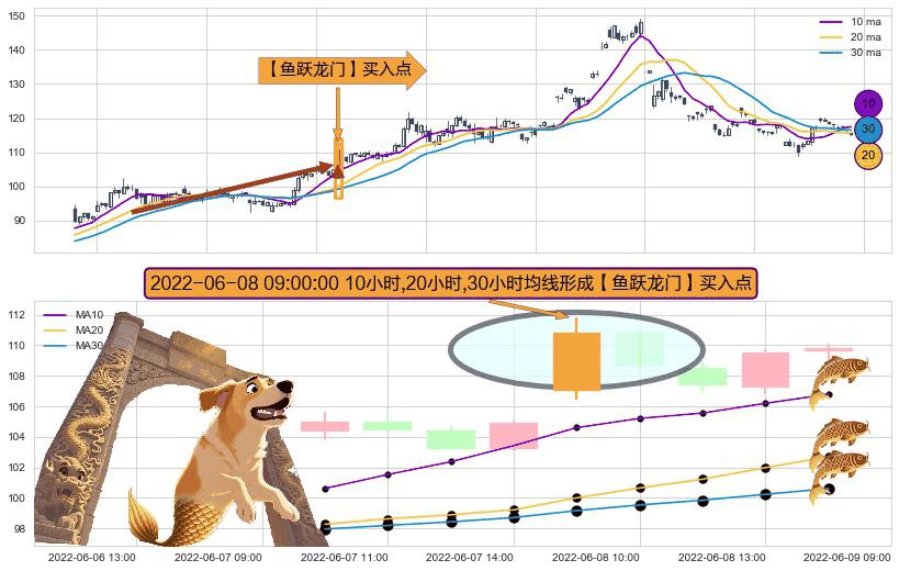 ⚀ 2022-06-08 09:00:00小时显现 10小时-20小时-30小时均线 【鱼跃龙门】买入点 看多信号,后市看涨,买入