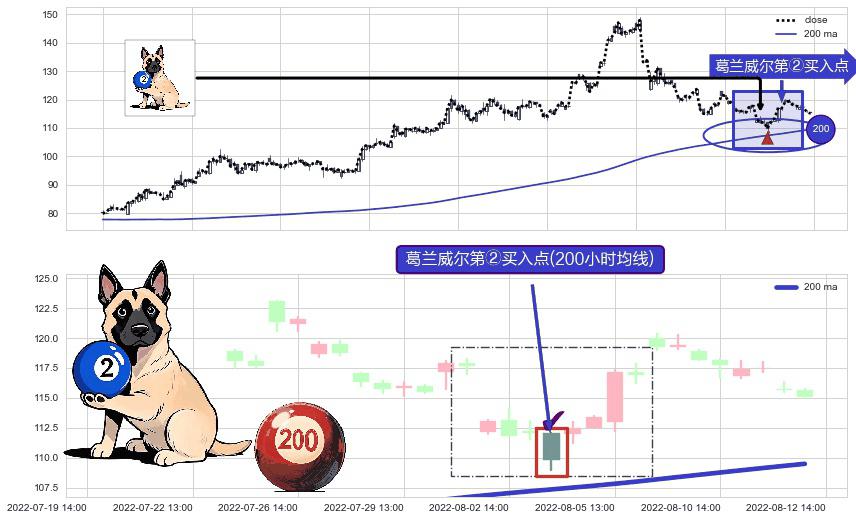 ⚀ 2022-08-03 14:00:00-小时显现 葛兰威尔均线 200小时均线 第②买入点 上升趋势的中继信号,后市看涨,买进信号