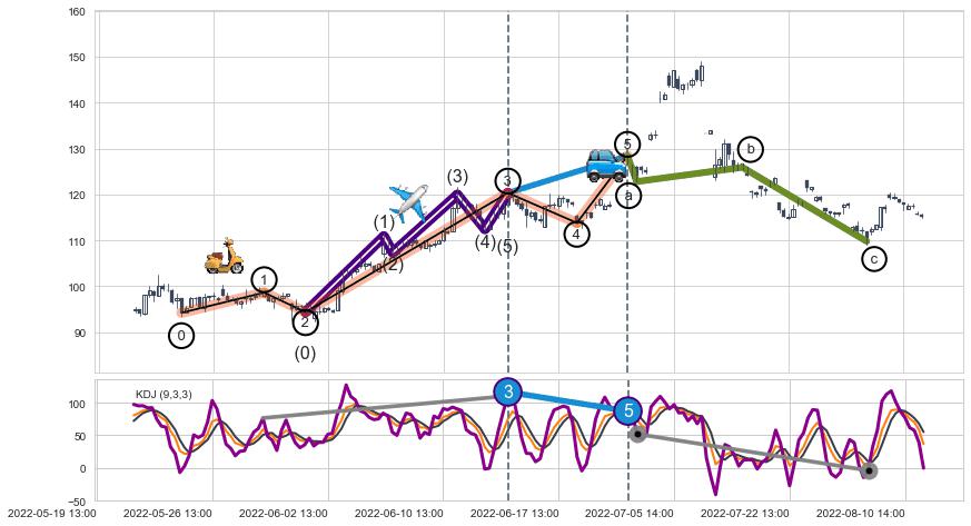 ➣ a,c调整浪MACD, RSI, KDJ走势都【未出现】背离,abc走势延续, 5浪反转概率增强