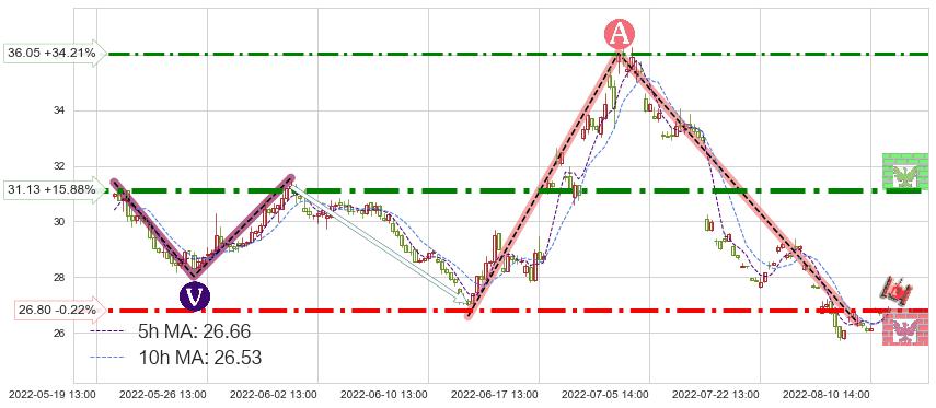 ♘ 阻力价格位36.05,可信任强度57.95%,距离最后交易2022-08-12 14:00形成的收盘价格26.86相差 +34.21%