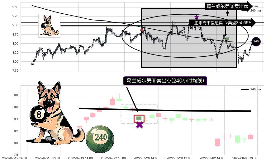 ⚁ 240小时均线 第⑧卖出点 属于 均线服从 信号,属于趋势运行的【常态】即信号期望为下降趋势的中继