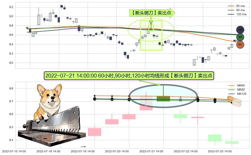 ⚀ 2022-07-21 14:00:00小时显现 60小时-90小时-120小时均线 【断头铡刀】卖出点 看空信号,后市看跌,卖出