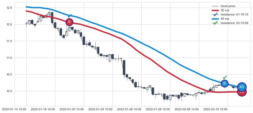 ⚂ 2022-07-21 14:00:00小时突然冒出一根大阴线,一下子下穿三条均线且收盘价收在各条均线之下