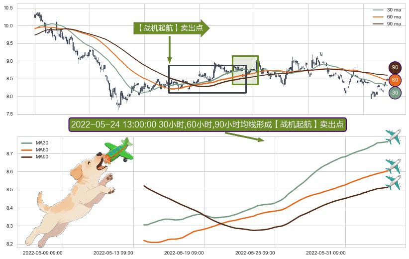 ⚀ 2022-05-13 13:00:00小时-2022-06-02 11:00:00小时显现 30小时-60小时-90小时均线 【战机起航】卖出点 看空信号,后市看跌,卖出