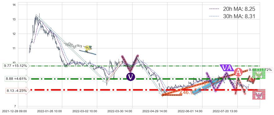 ♞ 20小时均线:8.25,30小时均线:8.31→ 快线<慢线