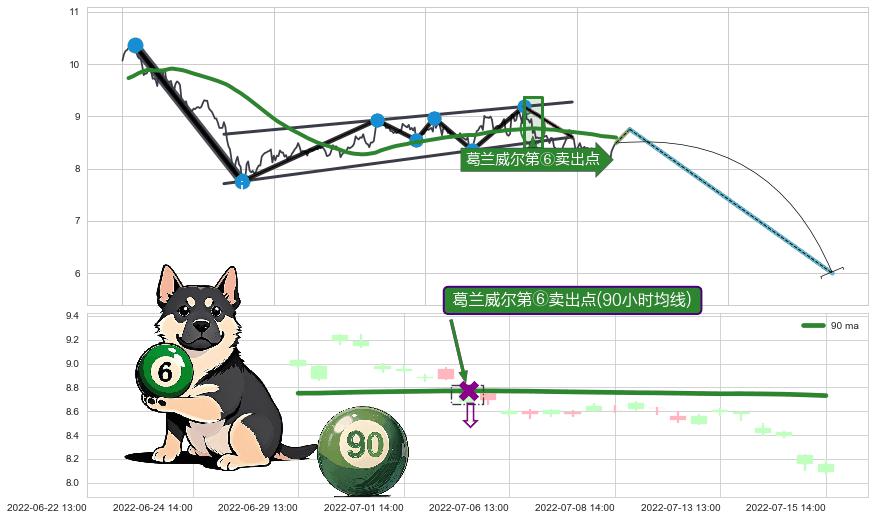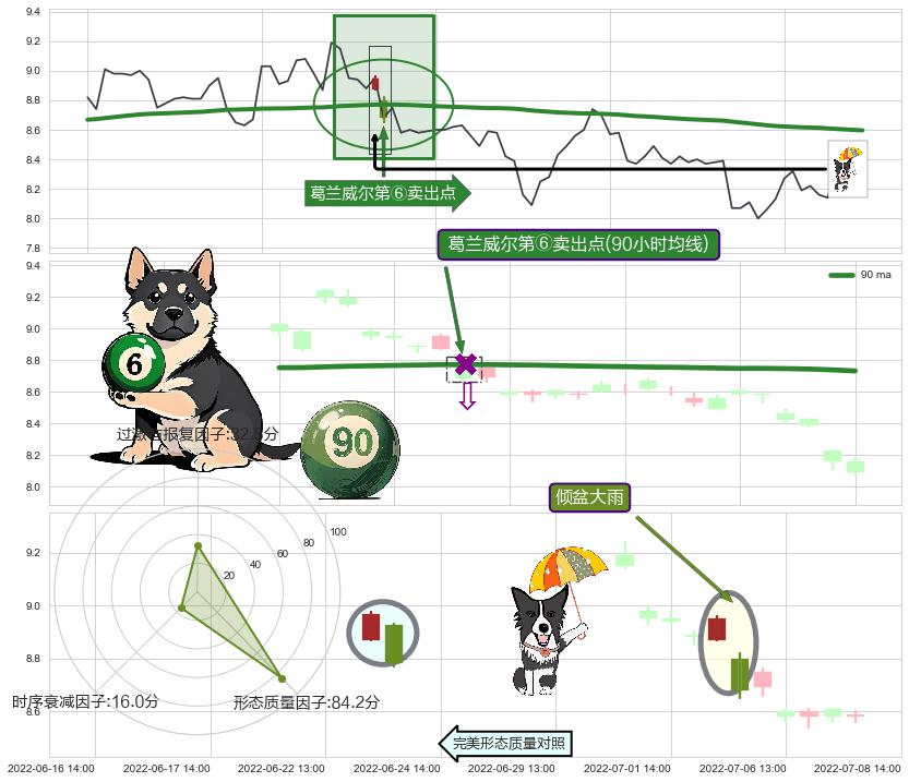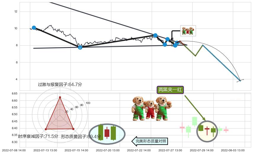 从2022-06-07 11:00至2022-07-15 14:00,共包含83个小时,阶段股价下跌-9.70%,阶段股价变动位移路程比: 1 : 7