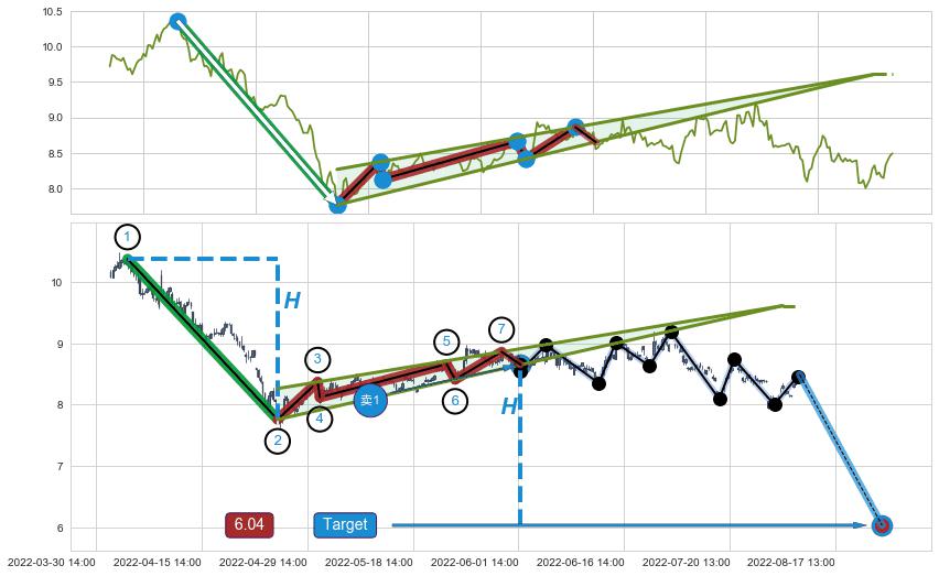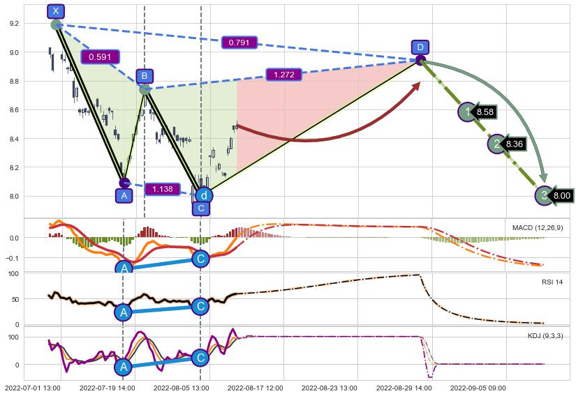 ➣ D点拟合预测价格8.94,距离最后交易收盘价格8.49相差 +5.32%