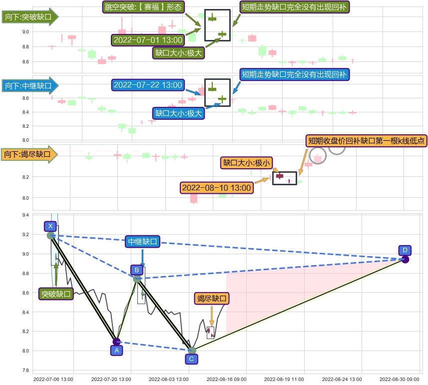 ➢ 2022-08-10 13:00形成:向下跳空【竭尽】缺口