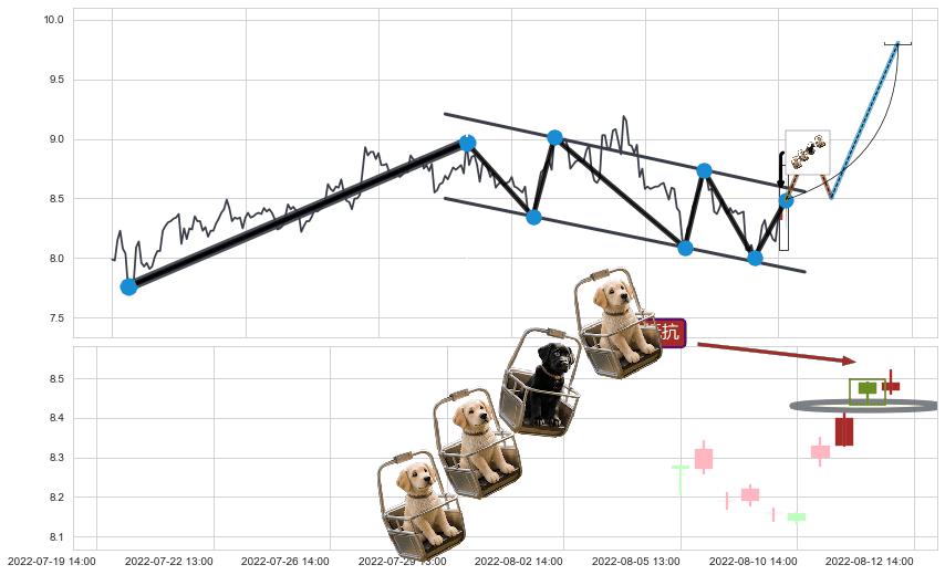 ➢ 收盘价(08-10:14: 8.14 )→再次回踩→第一根k线高点(08-04:14: 8.15 )