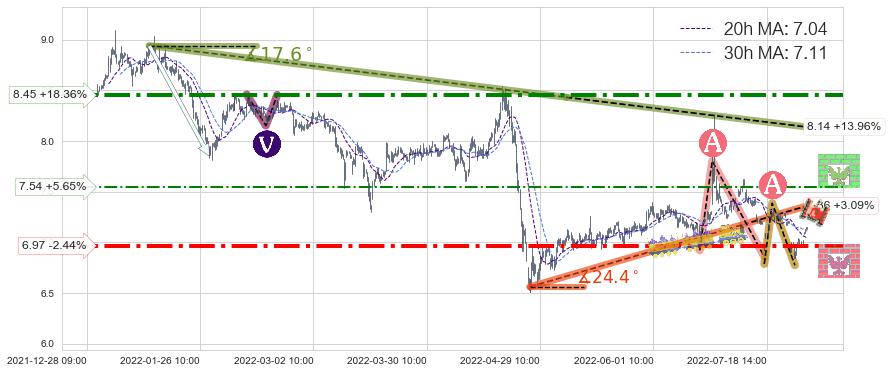 ♞ 20小时均线:7.04,30小时均线:7.11→ 快线<慢线