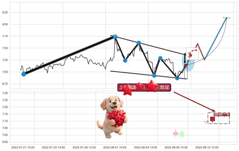 ➢ 【仅预测突破】最后价格:7.14与预测突破价格:7.35→【空间临近】后续最小【整理】第一目标价格→(08-24:13: 8.14 )