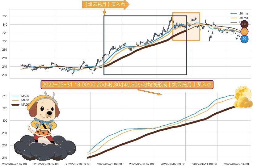 形态多维评估: ⚀ 2022-05-13 13:00:00小时-2022-06-17 13:00:00小时显现 20小时-30小时-60小时均线 【烘云托月】买入点 看多信号,后市看涨,买入