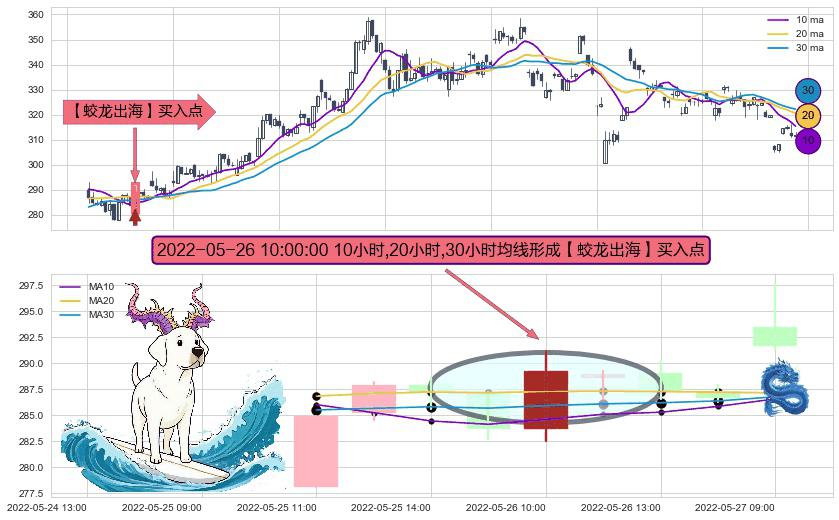 形态多维评估: ⚀ 2022-05-26 10:00:00小时显现 10小时-20小时-30小时均线 【蛟龙出海】买入点 看多信号,后市看涨,买入