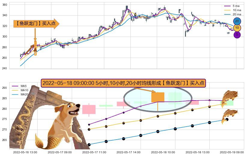 形态多维评估: ⚀ 2022-05-18 09:00:00小时显现 5小时-10小时-20小时均线 【鱼跃龙门】买入点 看多信号,后市看涨,买入