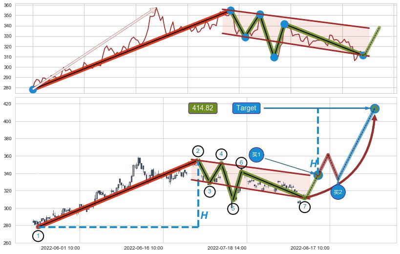 ➢ 【仅预测突破】最后价格:311.93与预测突破价格:338.11→【空间较大】后续最小【整理】第一目标价格→(08-23:13: 414.82 )