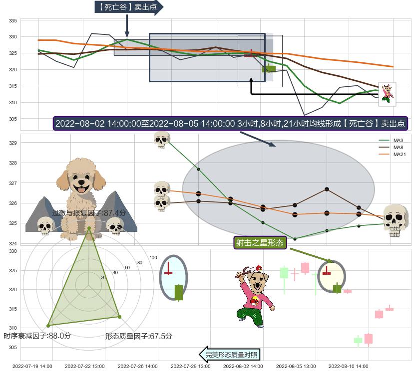 ♘ 在最后的下跌阶段2022-06-23 14:00至2022-08-12 13:00,存在 持续未破位的阻力位 ,阻力价格321.03,可信任强度68.24%,其距离最后价格311.93相差 +2.92%