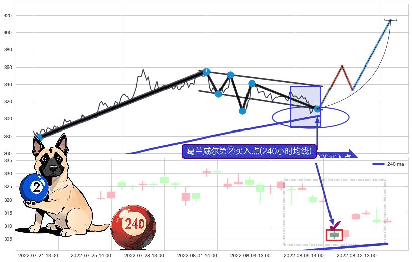 ➣ D点拟合预测价格296.04,距离最后交易收盘价格311.93相差 -5.09%