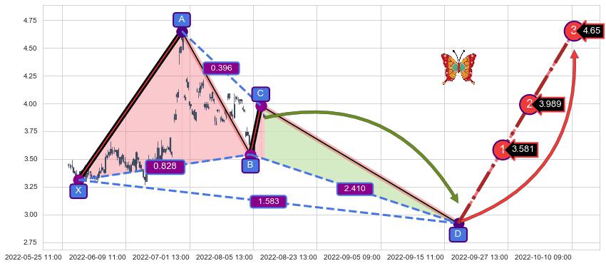 ➣ 未完成【蝴蝶】形态起点X: 05-30:09, 已到达C点: 08-11:13, 预测最终D点: 09-19:10, 共299交易小时