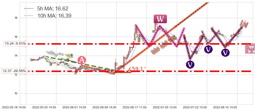 ♞ 5小时均线:16.62,10小时均线:16.39→ 快线>慢线