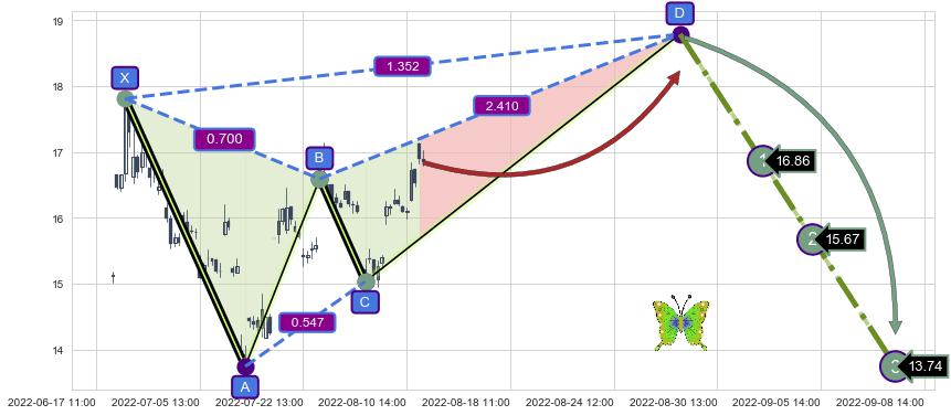 ➣ 未完成【蝴蝶】形态起点X: 06-22:13, 已到达C点: 08-02:14, 预测最终D点: 08-29:10, 共134交易小时