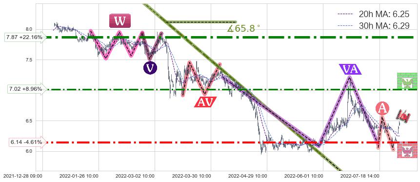 ♘ 阻力价格位7.02,可信任强度69.12%,距离最后交易2022-08-12 14:00形成的收盘价格6.44相差 +8.96%