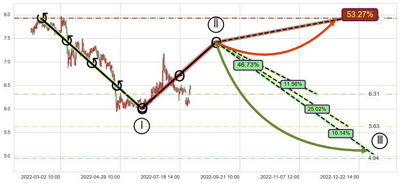 ♘ 支撑价格位6.14,可信任强度82.64%,距离最后交易2022-08-12 14:00形成的收盘价格6.44相差 -4.61%
