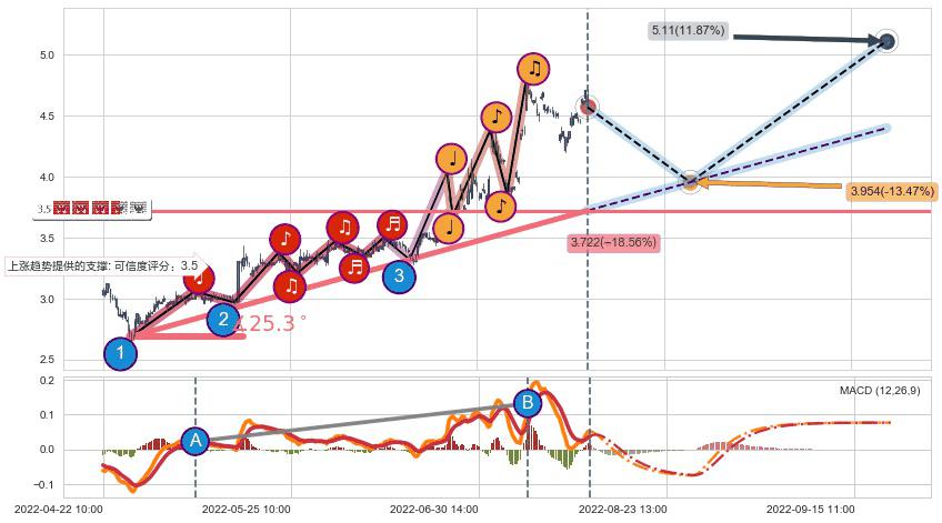 ➣ 预测:2022-09-20 12:00,【继续上扬】稳定目前上涨趋势的前提下,预测价格:5.11