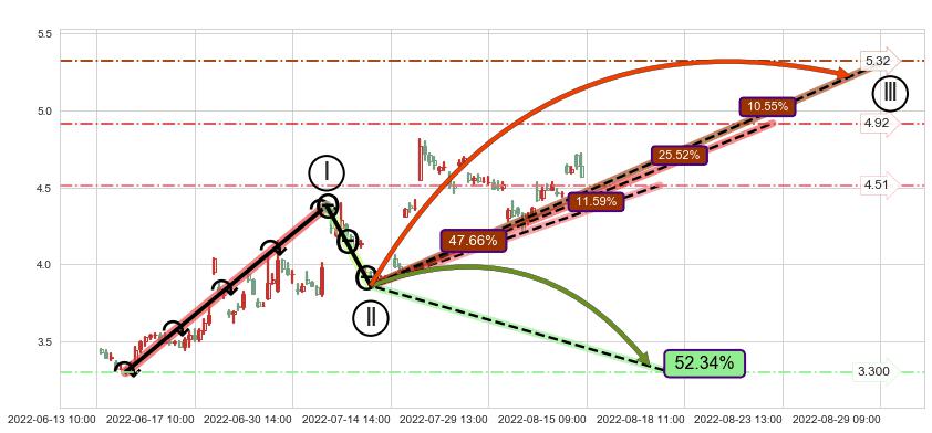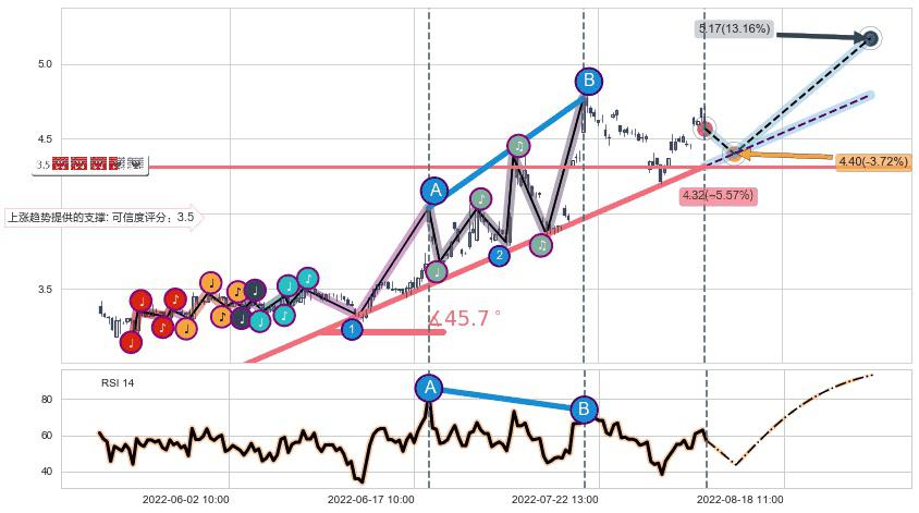 ➢ 预测:2022-08-16 10:00,【小幅回撤】稳定目前上涨趋势的前提下,预测价格:4.40
