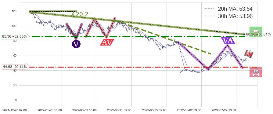 ♞ 20小时均线:53.54,30小时均线:53.96→ 快线<慢线