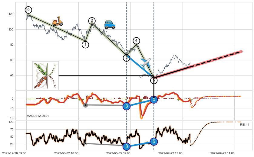 ➣ 第一, 三, 五浪下跌动能逐渐【增强变大】,趋势不断加固