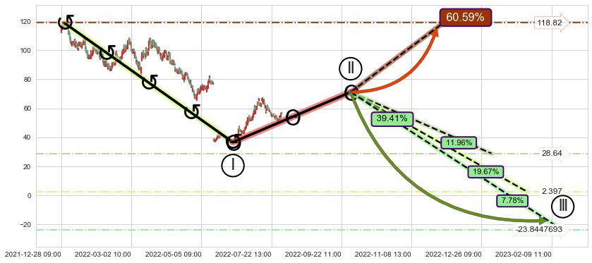 ➢ 高概率大级别循环下跌浪被破坏,反转向上(突破5浪起点)概率60.59%