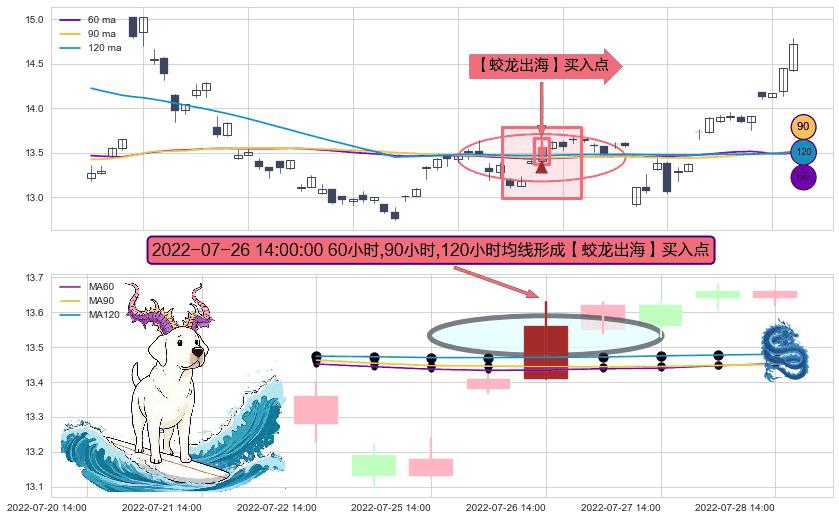 ⚀ 2022-07-26 14:00:00小时显现 60小时-90小时-120小时均线 【蛟龙出海】买入点 看多信号,后市看涨,买入