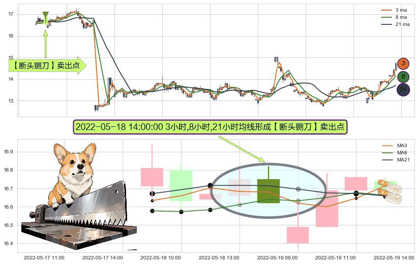 ⚀ 2022-05-18 14:00:00小时显现 3小时-8小时-21小时均线 【断头铡刀】卖出点 看空信号,后市看跌,卖出