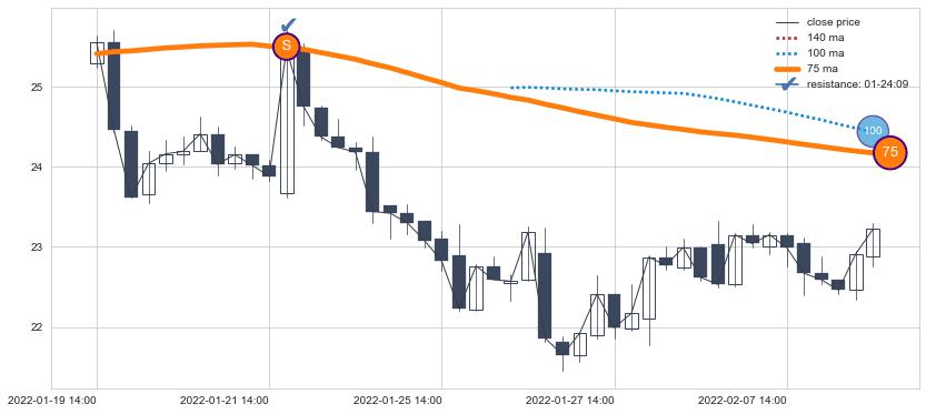 ⚂ 2022-05-18 14:00:00小时突然冒出一根大阴线,一下子下穿三条均线且收盘价收在各条均线之下