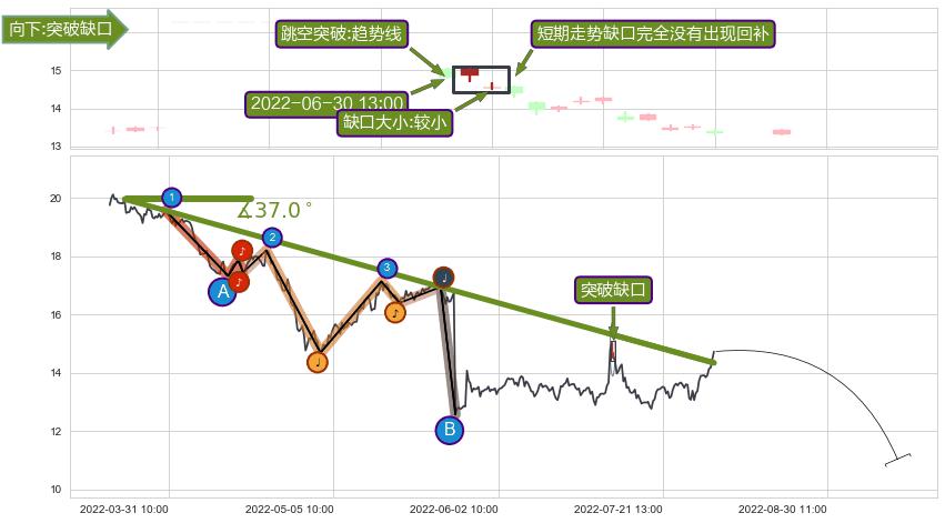 ➢ 2022-06-30 13:00形成:向下跳空【突破】缺口
