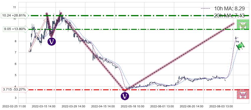 ♘ 阻力价格位10.24,可信任强度73.47%,距离最后交易2022-08-12 14:00形成的收盘价格7.95相差 +28.81%